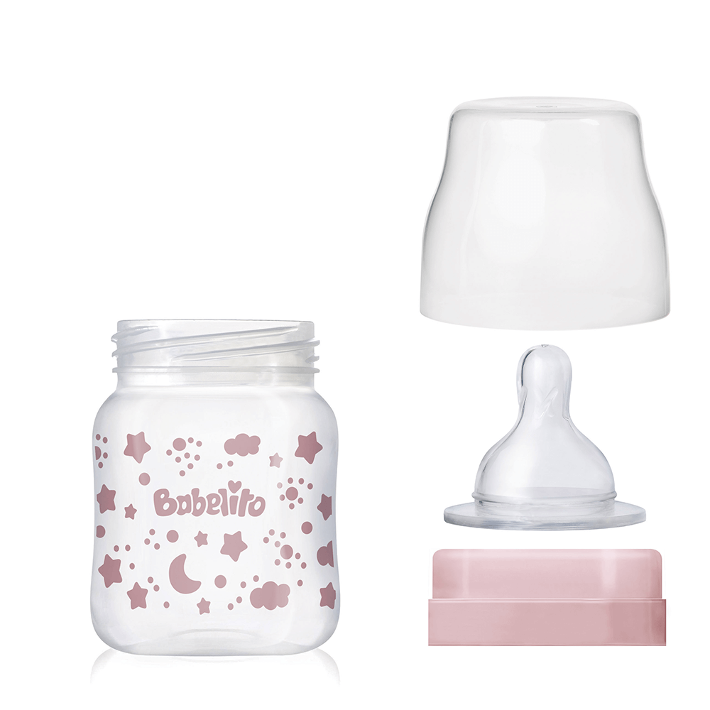 Nuevo biberón boca ancha con tetina de silicona: posee válvula de aire en la base, el aire se direcciona hacia la válvula de ventilación e ingresa al biberón, provocando una salida constante de alimento, minimizando la ingesta de aire y reduciendo así, el riesgo de cólicos e hipo para tu bebé. La amplitud de la boca de la botella facilita su limpieza. Además, el capuchón del biberón actúa como un tope para la tetina, y previene el derrame de líquido.