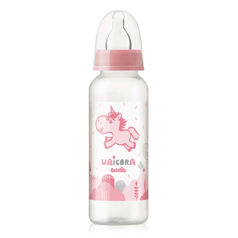 Biberón recto de boca estándar.