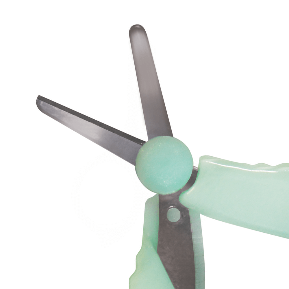 Su mango plástico ergonómico brinda un agarre firme y confortable, mientras que sus filos de acero inoxidable con puntas redondeadas permiten un corte preciso sin riesgo de lastimaduras.